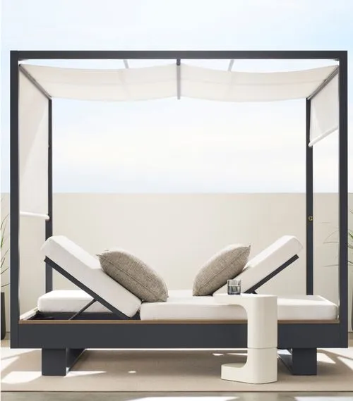 Build a covered structure over part of your outdoor space so that you can enjoy shade when needed, but still maintain some sunny areas. Techo-Bloc products shown; Brandon double-sided wall in Champlain Grey and Borealis slabs in Hazelnut. Build a covered structure over part of your outdoor.
